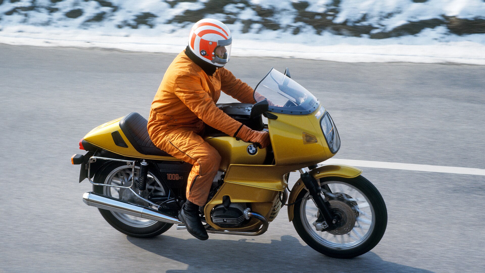 The R 100 RS was BMW Motorrad's first production motorcycle with standard full fairing developed in the wind tunnel. As well as following aerodynamic principles the developers' primary concern was to protect the rider from wind and bad weather. In addition, the R 100 RS was the first BMW bike with a 1-litre cylinder capacity. With a top speed of 200 km/h, the motorcycle is also a leader in terms of speed - however, unlike competitor bikes, the rider can sit in a relaxed upright position behind the fairing. BMW thus established the sporty tourer class.