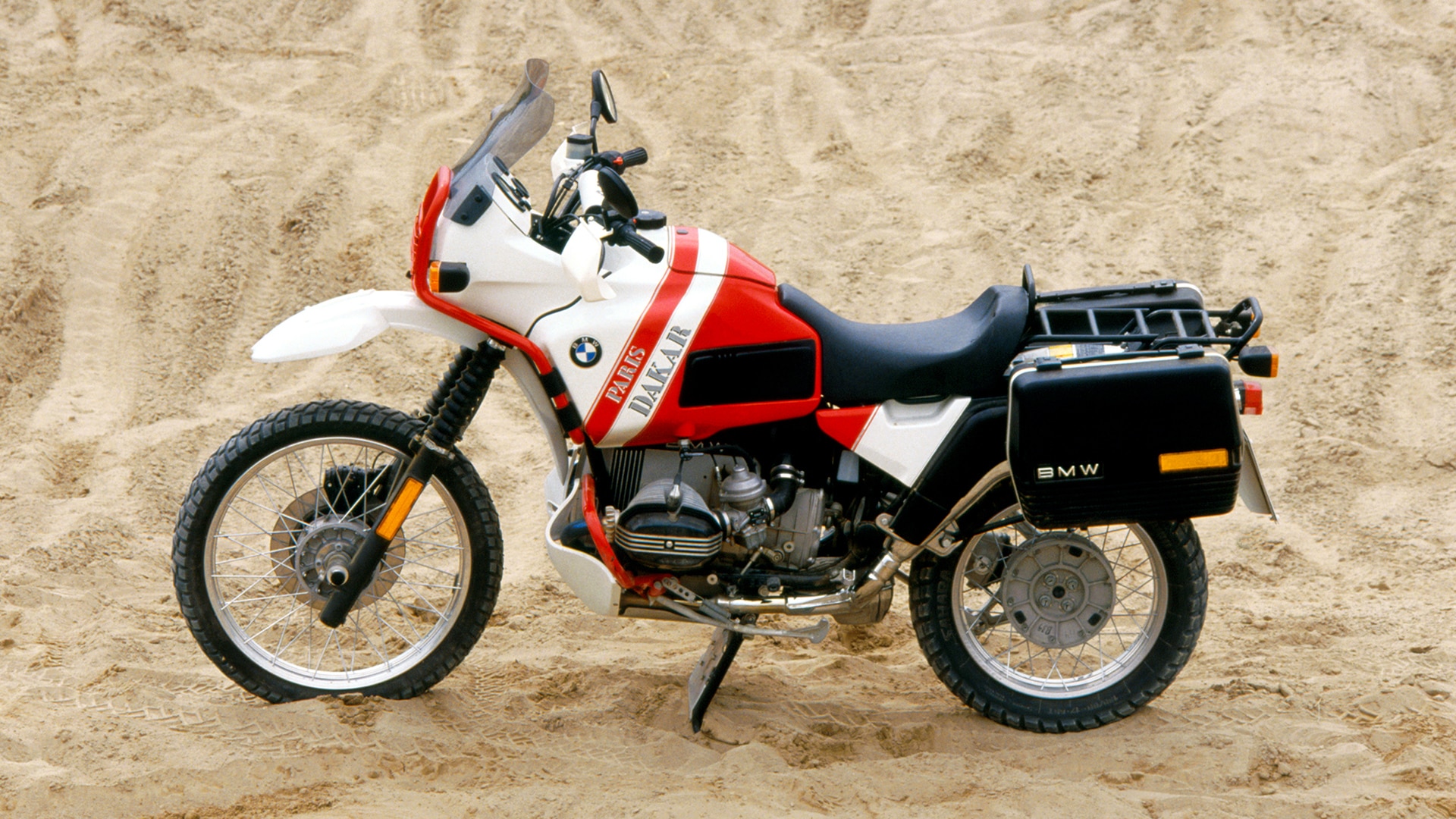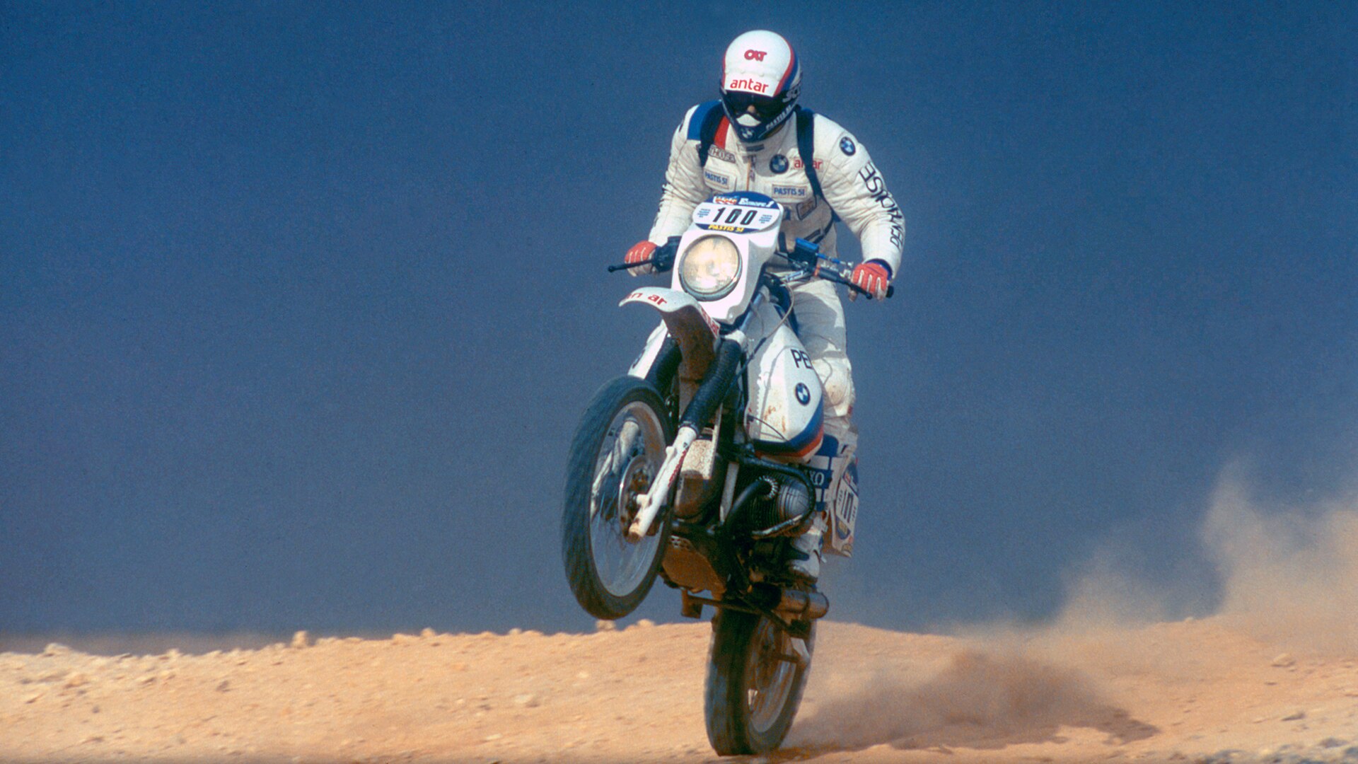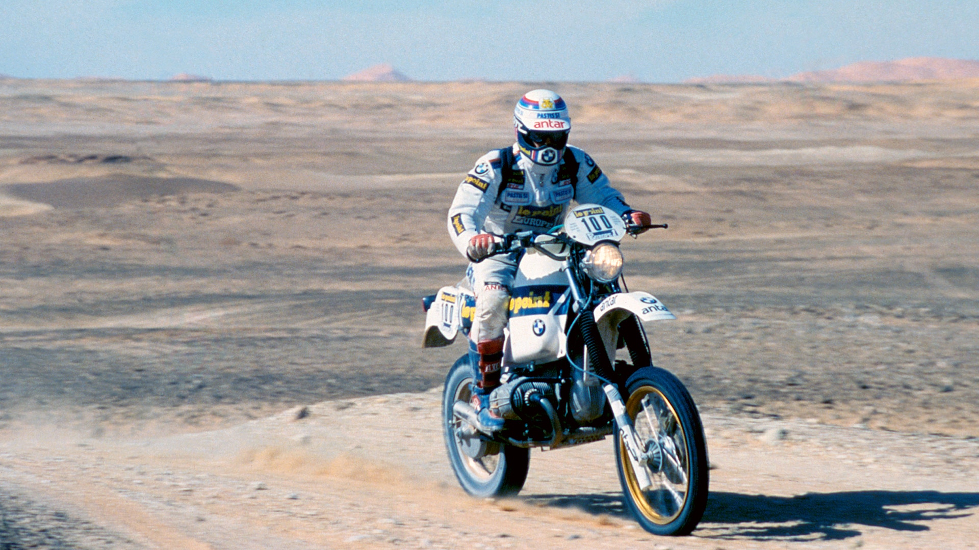 In the early eighties, BMW sends the "boxer" into the desert. With the Frenchman Hubert Auriol, called "the African" because of his navigating talents, BMW wins the toughest rally in the world. Auriol is able to repeat his success in 1983, whilst in 1984 and 1985 it is the Belgian Gaston Rahier who gets his name on the list of winners riding a BMW.
